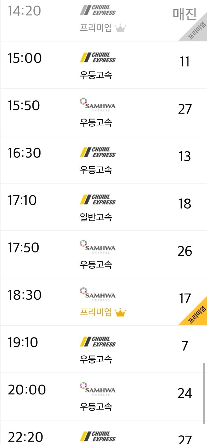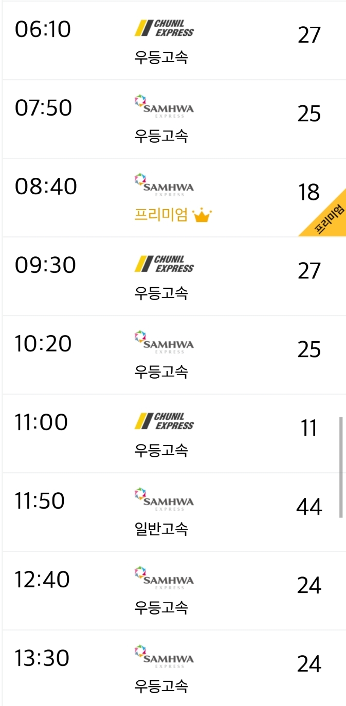 호남제일문에서 인천 가는 고속버스 시간표와 요금, 예매관련 정보입니다~!