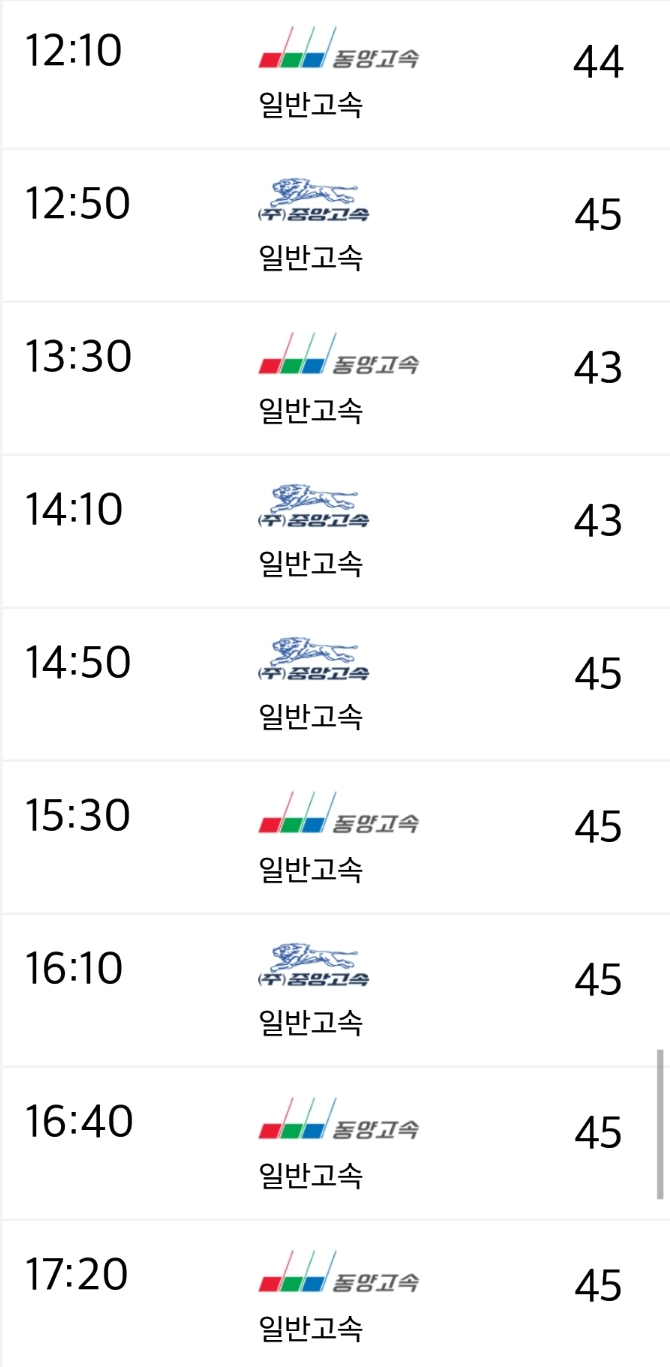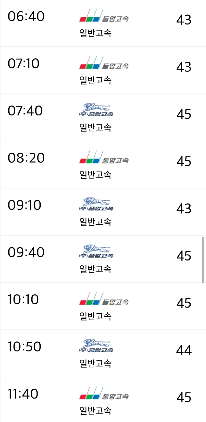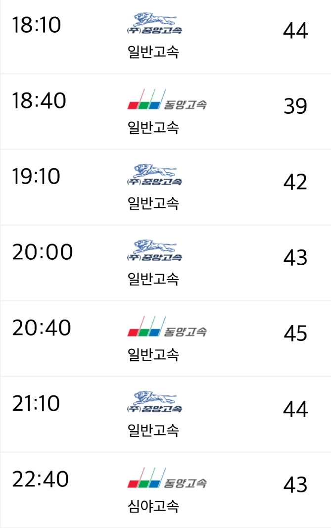 운행회사 : 동양고속, 중앙고속